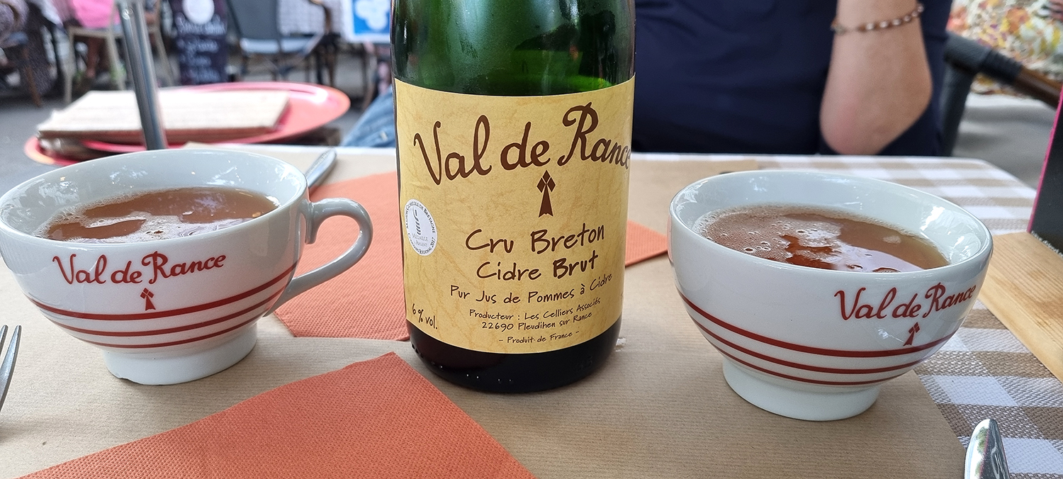 bereit für´s Abendessen, begleitet von einer feinen Flasche Cidre.
