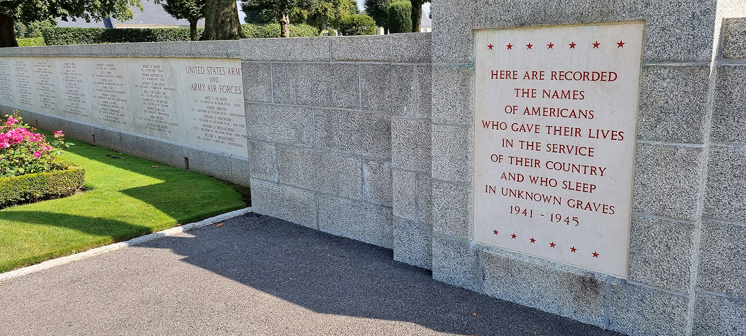 rund um die Kirche, die Namen der vermissten US-Soldaten in der Bretagne, beinahe endlos.....
