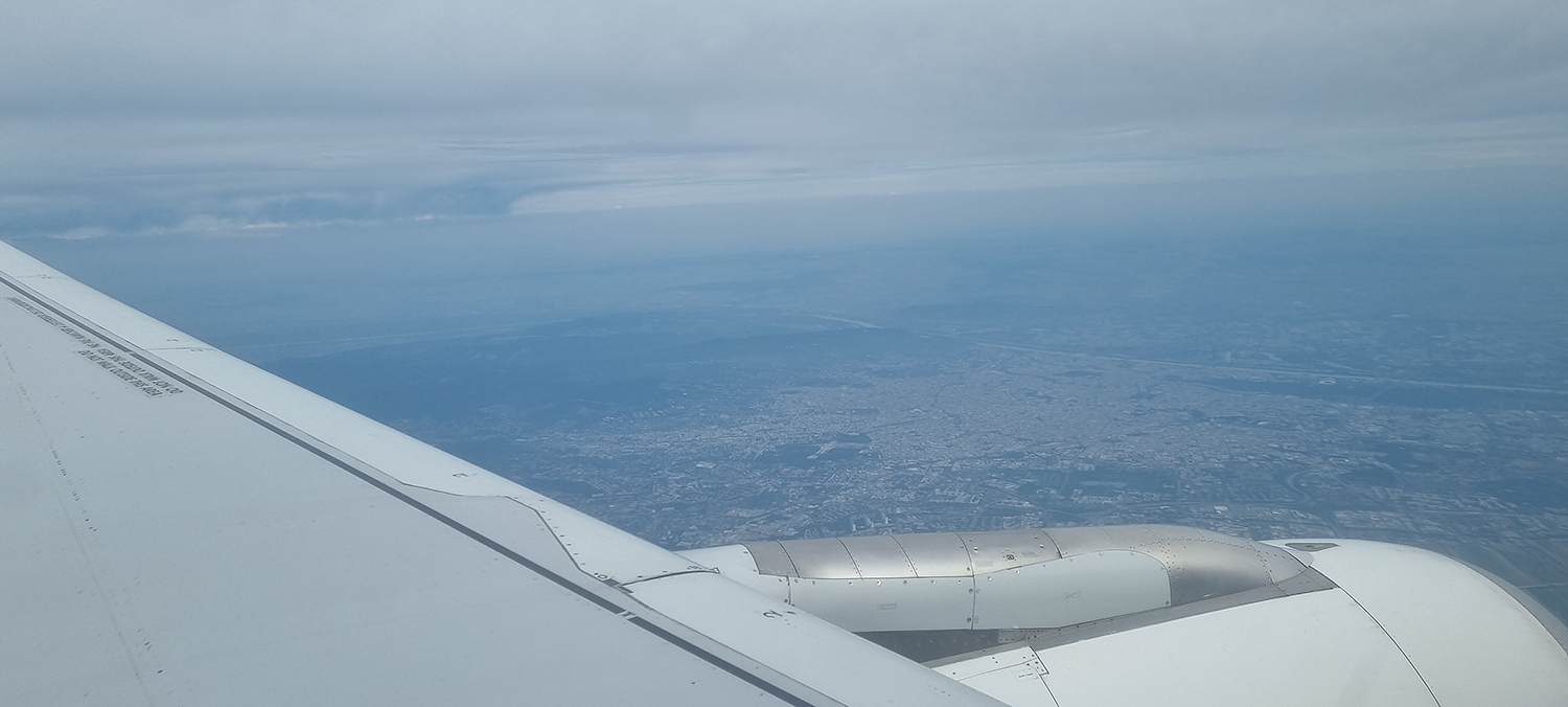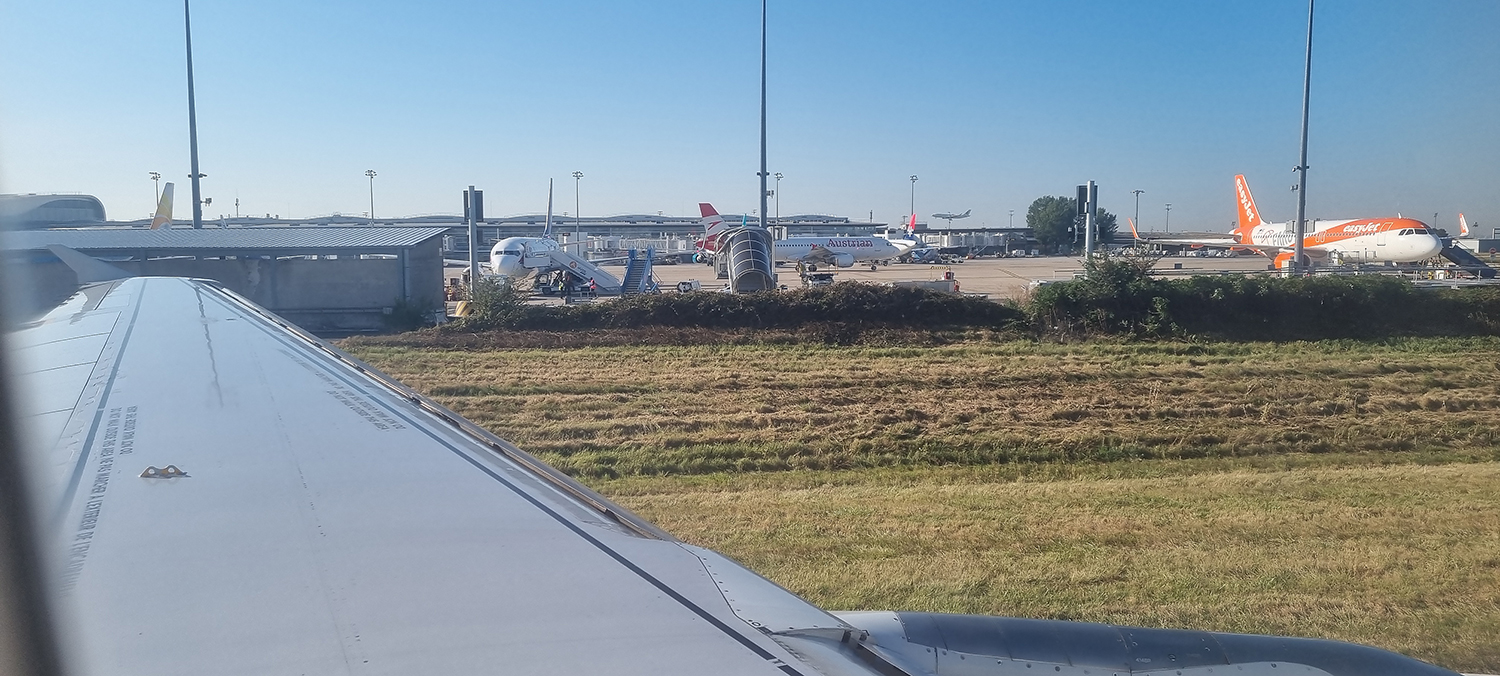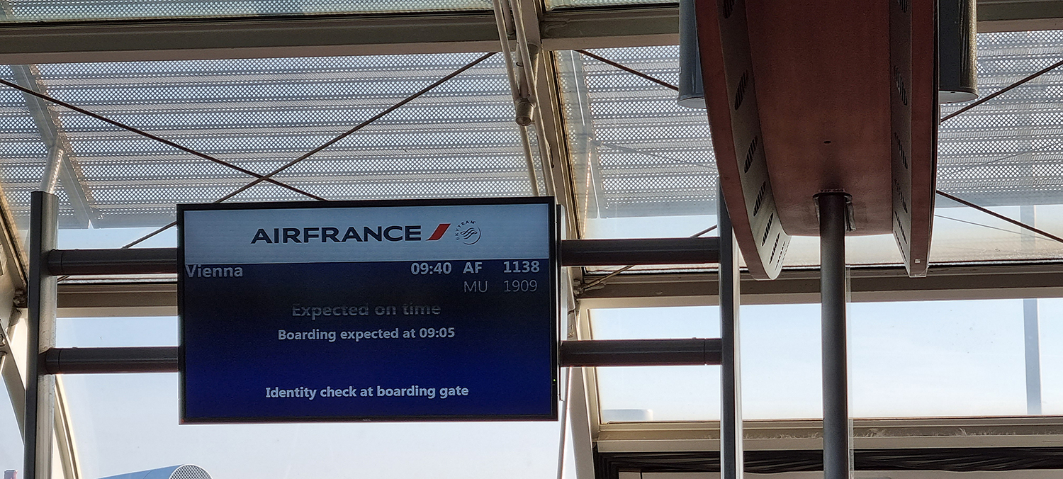 .... sehr zeitig in der Früh, Boarding completed, es ist 05:50, wir sind am Weg nach Paris