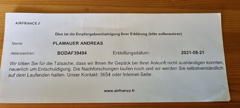 .... wieder mal, mein Koffer ging verloren! Gut, hab´ schon Erfahrung damit. Deswegen "neuerlich".