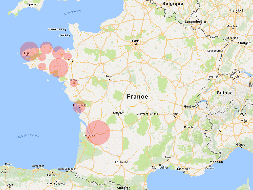 von Bordeaux, über die Golfküste und dem Pays de Loire in die Bretagne.