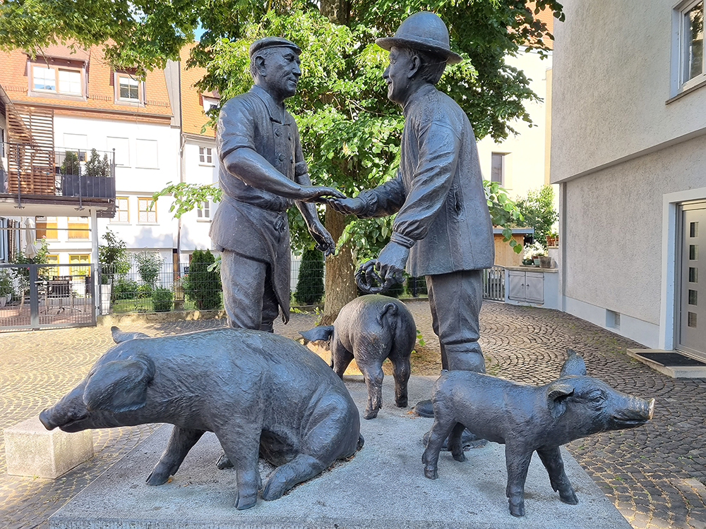 Dr Metzgr ond dr Bour beim Handl om dui Sau