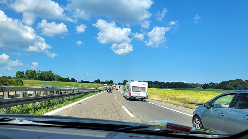 noch 103 km zum Tagesziel, Ulm.