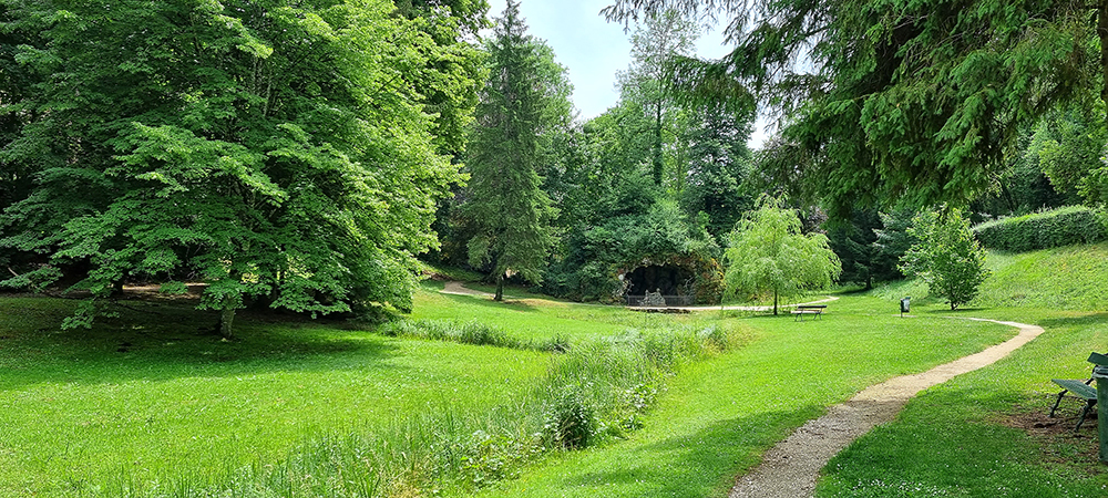 die Parkanlage, im Hintergrund die Quellgrotte.