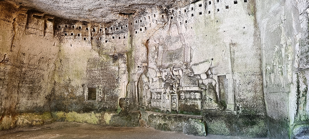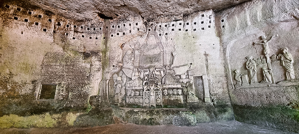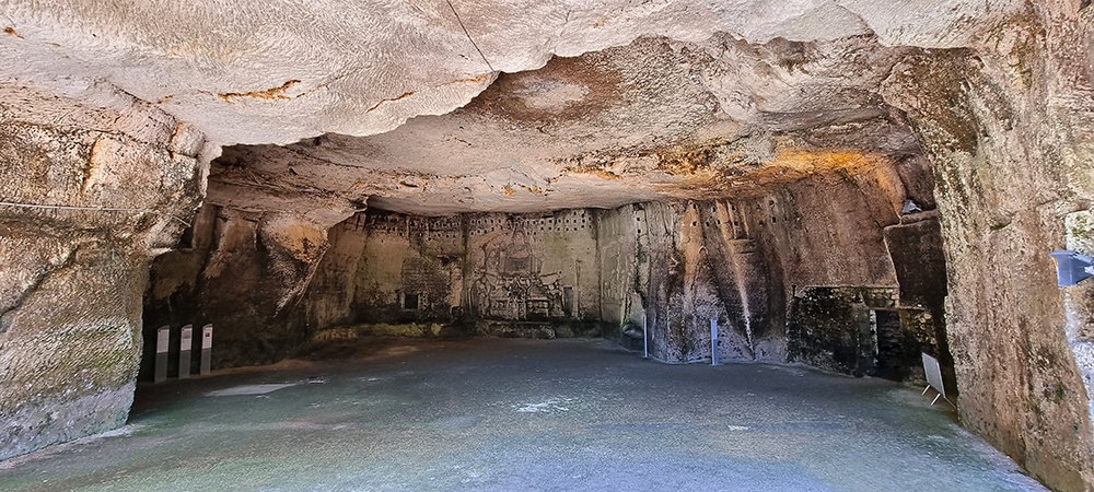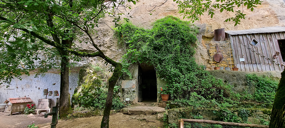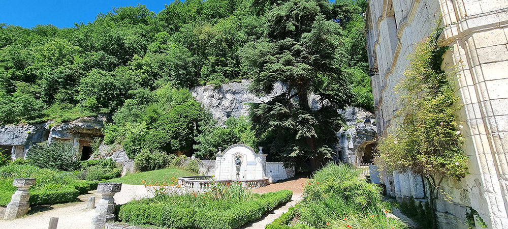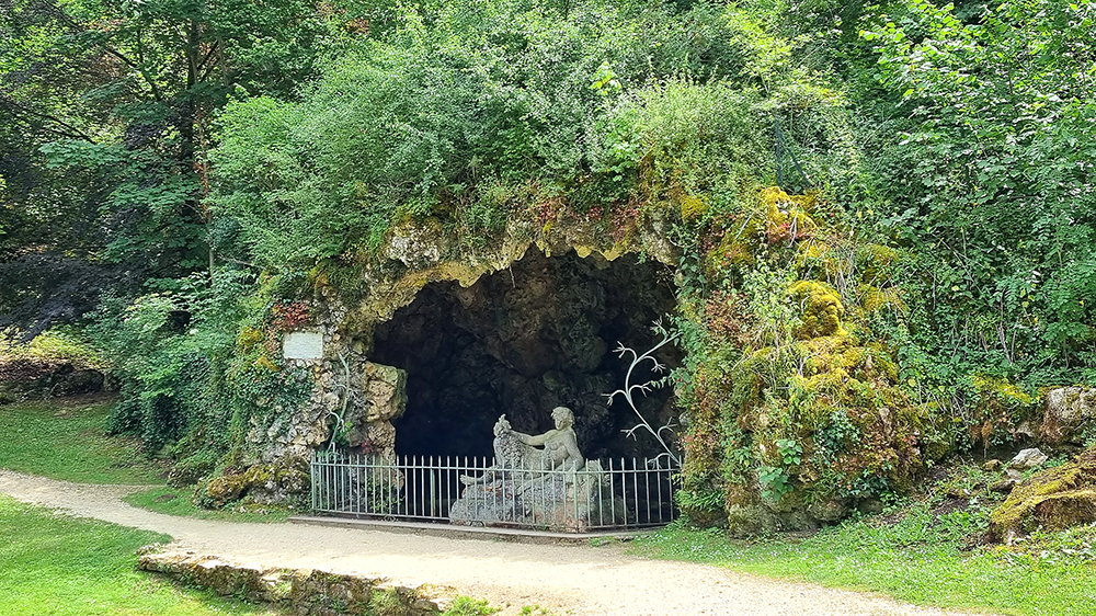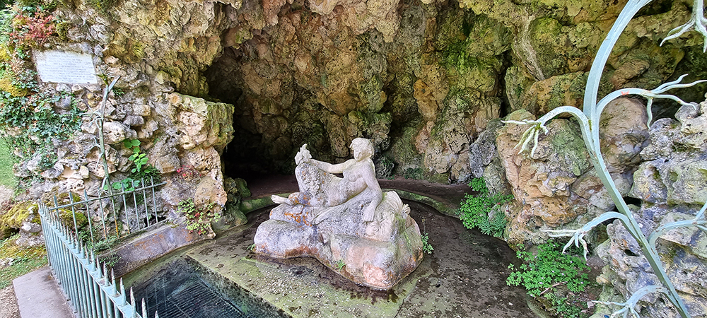 die Quellgrotte, (wurde zum Schutz der Hauptquelle künstlich angelegt).